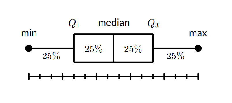the median is marked by a vertical line inside the box